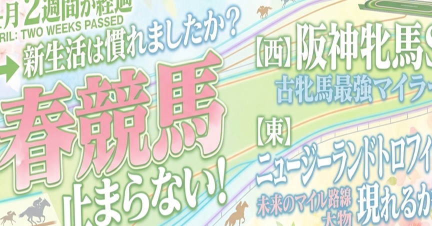 4月になってもう2週間たつわけだが、新入生たちはもう環境には慣れたであろうか?そんな忙しさとはまるで関係なく春競馬は続いていくわけだが。さて今日は、東西で1か月後の府中のマイルG1を見据えるトライアル、西では古牝馬最強マイラーが集う阪神牝馬S、東では未来のマイル路線の大物現れるか?ニュージーランドトロフィー!!!