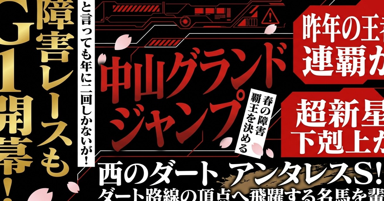 障害レースもG1開幕!と言っても年に二回しかないが!昨年そのG1を総なめにした王者が連覇を飾るか、超新星が下剋上を成し遂げるのか?春の障害の覇王を決める中山グランドジャンプ!!!西ではダート路線の頂点へここから飛躍する名馬を輩出したアンタレスS!!!